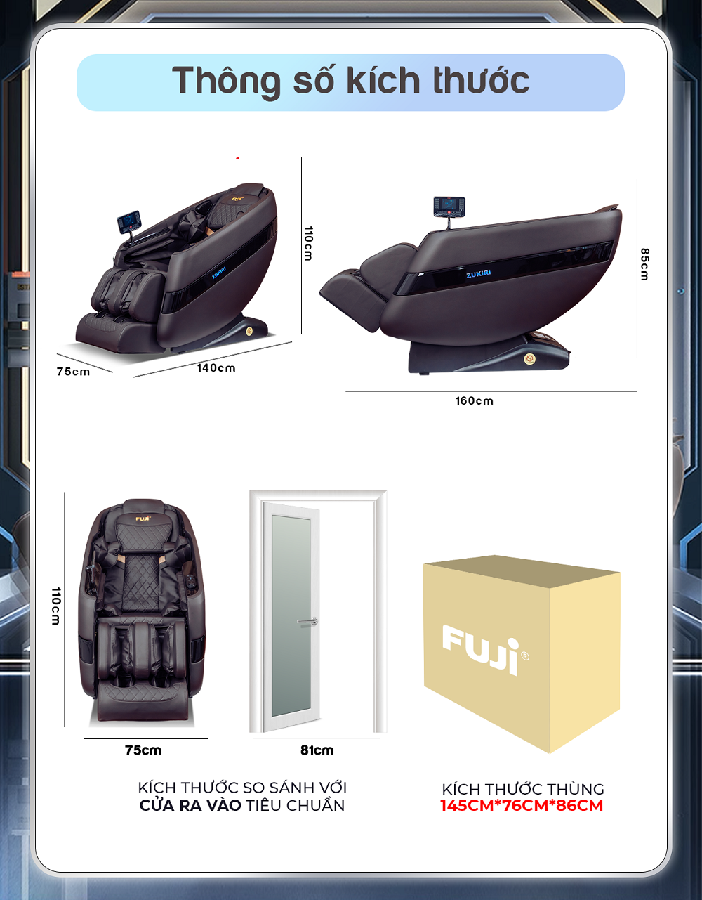 Bạn khao khát những giây phút thư giãn sau một ngày dài mệt mỏi? Bạn mong muốn tìm kiếm một giải pháp chăm sóc sức khỏe toàn diện cho cả gia đình? Ghế massage Fuji Zukiri chính là câu trả lời hoàn hảo. Với sự kết hợp giữa công nghệ tiên tiến và hàng loạt tính năng hiện đại, Fuji Zukiri không chỉ giúp xua tan những cơn đau nhức khó chịu, giảm căng thẳng hiệu quả mà còn mang đến trải nghiệm thư giãn đẳng cấp như tại một spa 5 sao ngay tại ngôi nhà của bạn. Sở hữu ngay ghế massage Fuji Zukiri để tận hưởng những phút giây thư giãn tuyệt vời, giúp cơ thể hồi phục nhanh chóng và tinh thần sảng khoái hơn mỗi ngày.